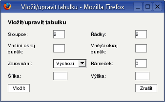 | Tlačítko vložit tabulku | Obsah |