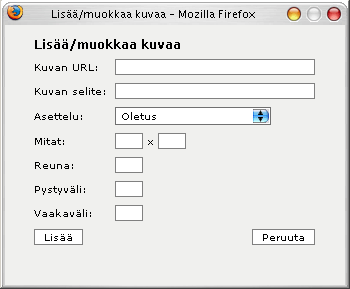 | Asettelu | Kuvan asettelu, käytännöllinen kun halutaan tekstin rivittyvän kuvan ympärille. |