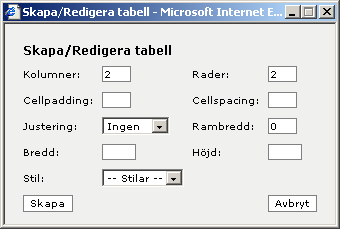 | Skapa/Redigera tabell | IF |