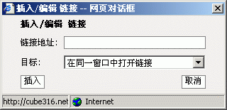 窗口中有两个表单域,第一个是链接的地址,第二个是链接的打开方式。